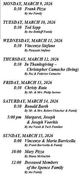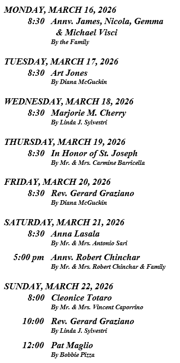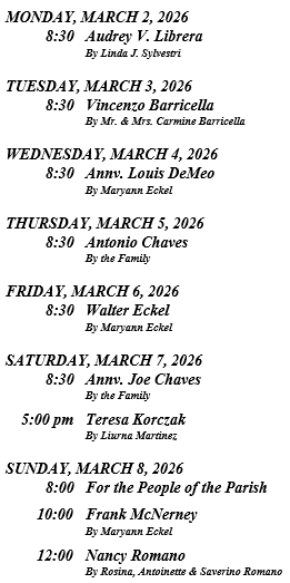 The Sanctuary Lamp for the month of March has been given in memory of Josephine & Anthony DeGrosa by Joann DeGrosa.