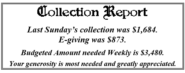 We have $7,230.00 pledged toward our Archdiocesan directed goal this year of $13,746. The Archdiocese has sent out letters to past donors announcing the 2026 Appeal. If you wish to participate you can either mail your pledge directly to the Archdiocese or you can put it in our collection and we will forward it for you. If you do decide to mail it in directly, we are asking that you let Sue know in the office so we can be sure our account is properly credited. You can drop a note in the collection, call the rectory, or send us an email. Thank you.